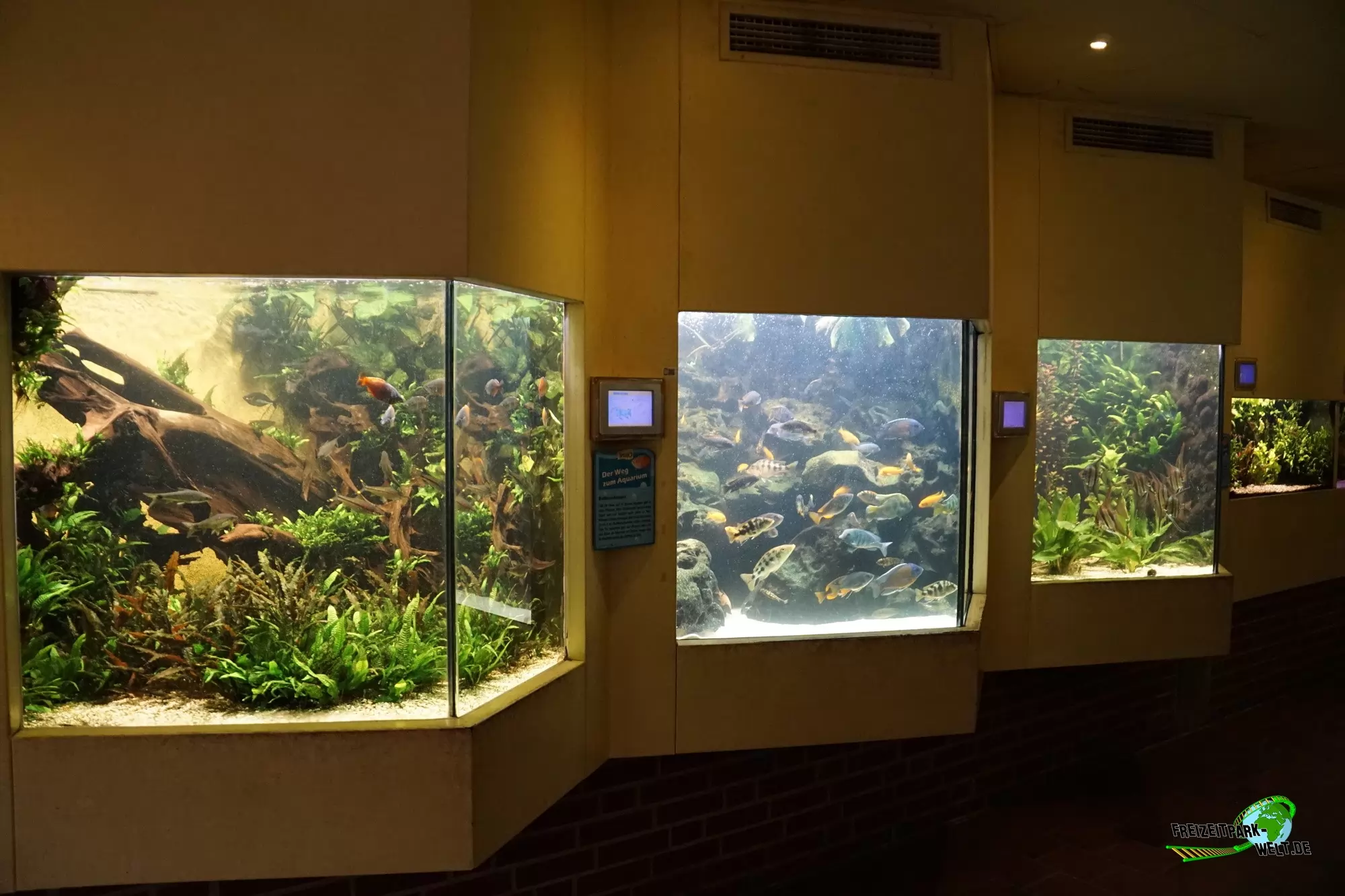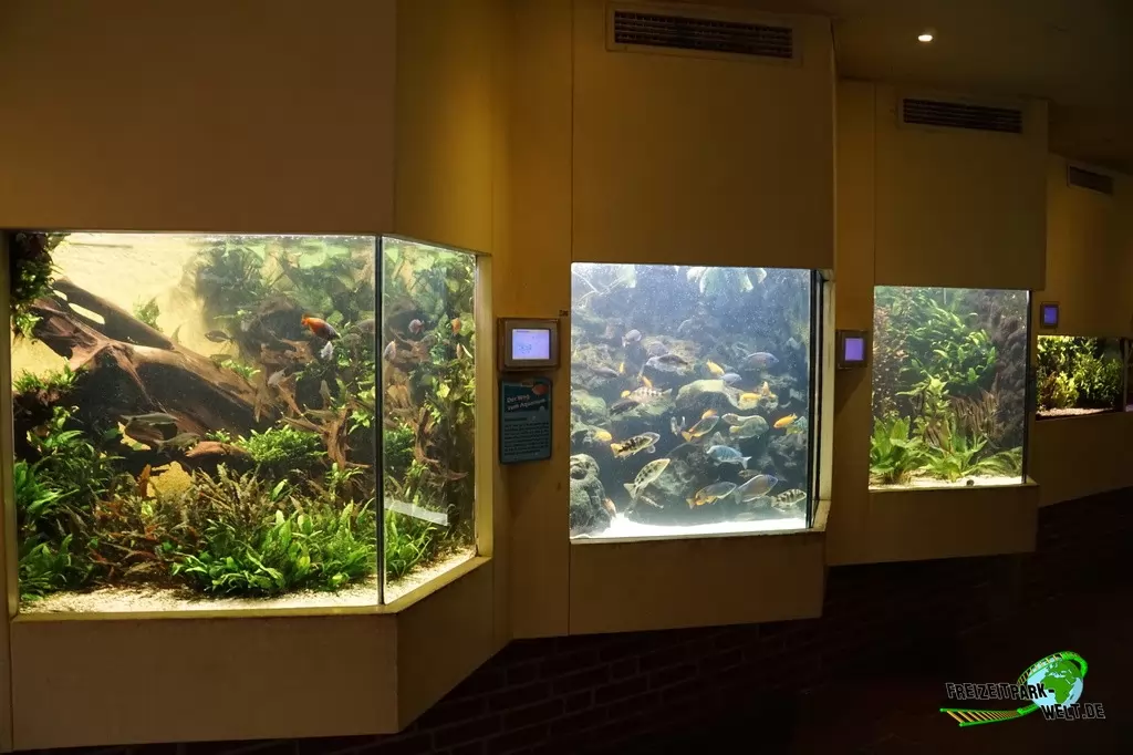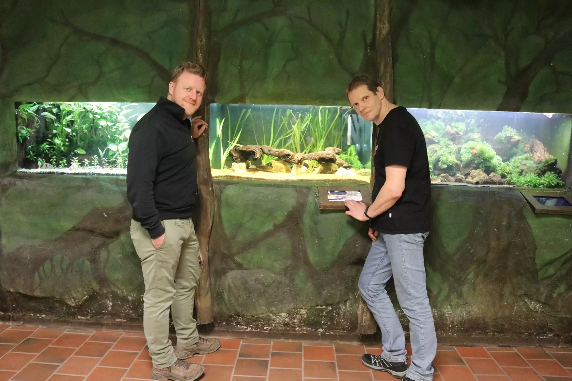 Über die neuen Zoobewohner und den Startschuss zur Teilnahme am Erhaltungszuchtprogramm „Citizen Conservation“ freuen sich Tobias Klumpe (Zoologische Leitung) und Stefan Bramkamp (Revierleiter Tetra-Aquarium). Foto: Presse Zoo Osnabrück