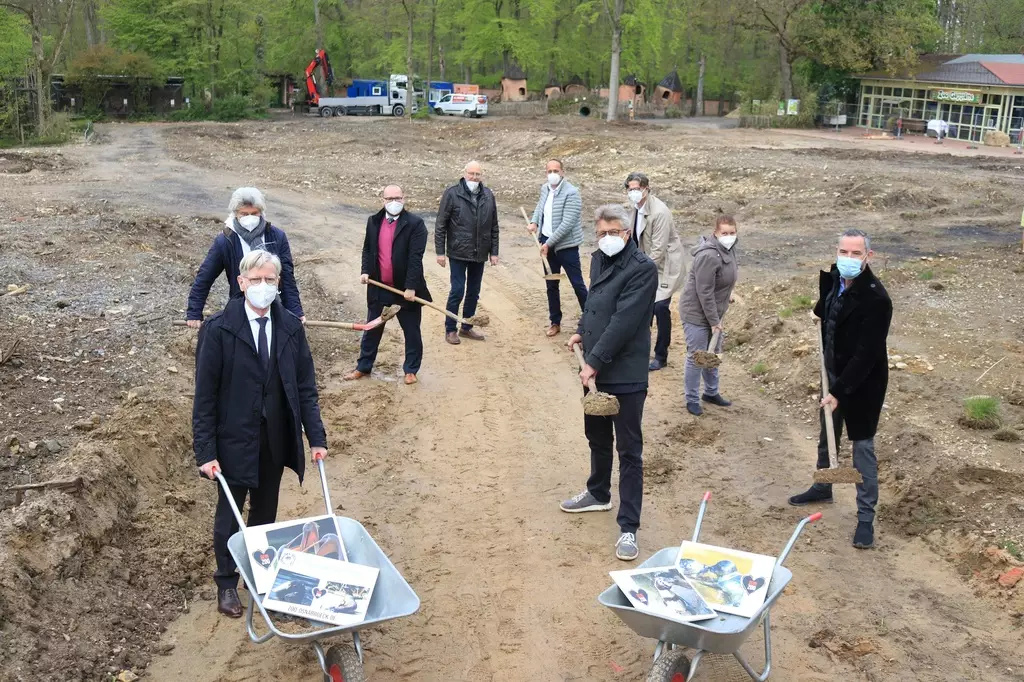 Spatenstich! Ab jetzt wird im Zoo Osnabrück gebaut: Die 5.000 Quadratmeter großen „Wasserwelten“ entstehen in der Nähe der Zoo-Gaststätte und sollen bis Sommer 2022 fertiggestellt werden.