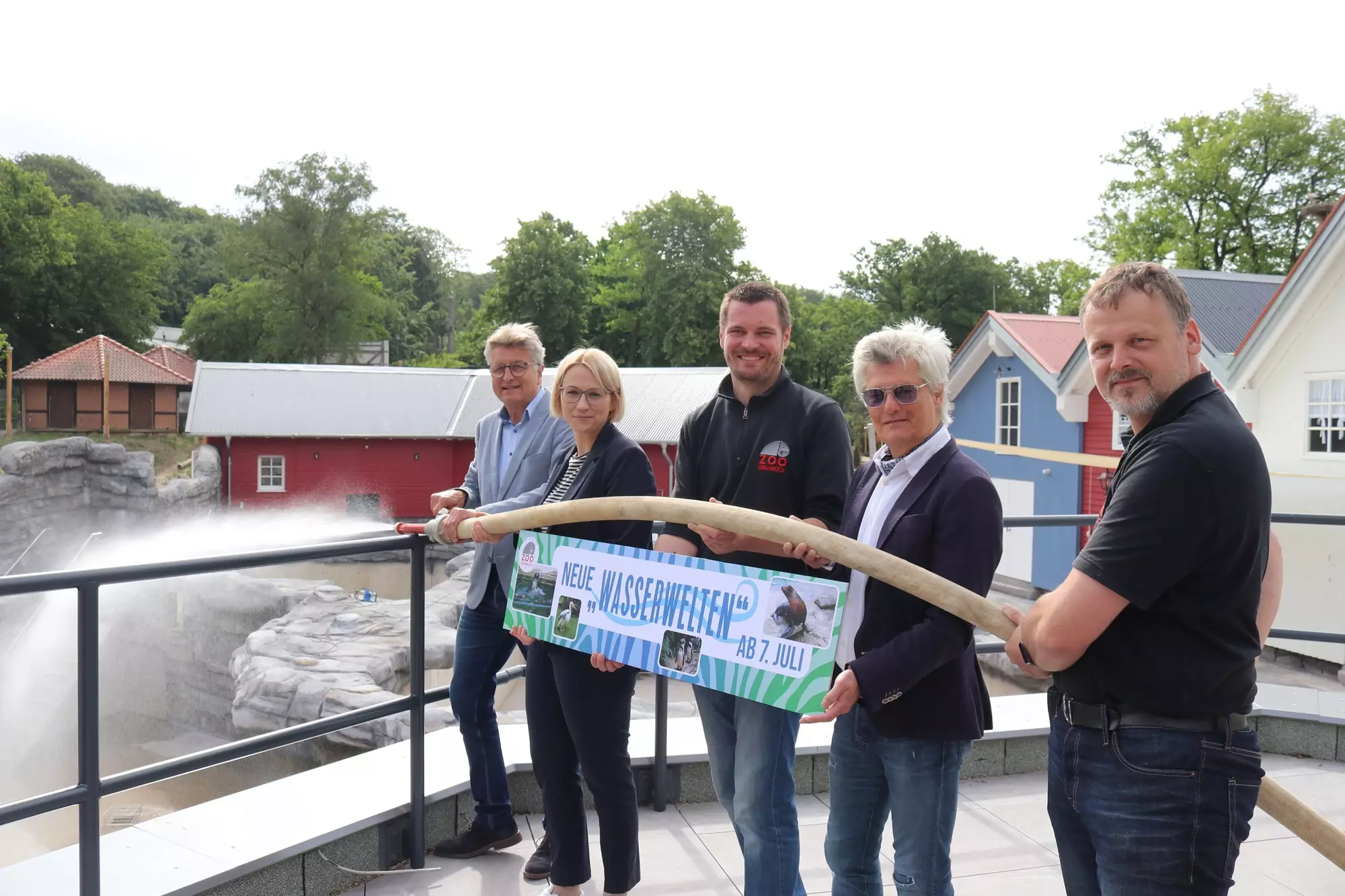 Dr. E.h. Fritz Brickwedde (v.l.n.r.), Präsident der Zoogesellschaft Osnabrück, gemeinsam mit Katharina Pötter, Oberbürgermeisterin der Stadt Osnabrück, Andreas Wulftange, zoologische Leitung, Andreas Busemann, Zoogeschäftsführer und Thorsten Vaupel